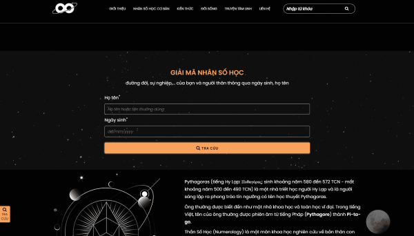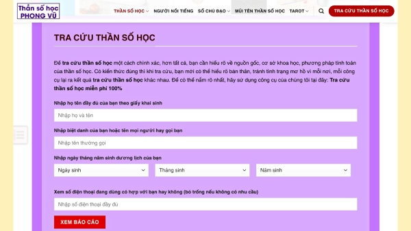 Website có giao diện dễ sử dụng, có khung nhập liệu ngay đầu trang để bạn nhập thông tin và tra cứu dễ dàng. Ngoài ra, trang web còn là một Blog chia sẻ kiến thức về thần số học và các vấn đề thường gặp trong đời sống hàng ngày.