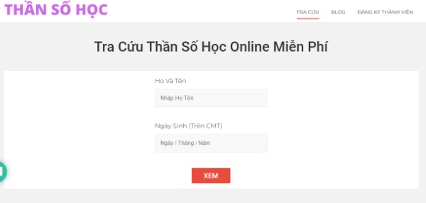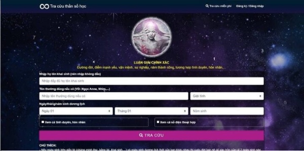 Tracuuthansohoc.com là website tra cứu thần số học online miễn phí, uy tín được nhiều người sử dụng. Trang web thuộc sở hữu của thầy Louis Nguyễn, một chuyên gia thần số học nổi tiếng tại Việt Nam. Tracuuthansohoc.com có một công cụ tính thần số học dựa trên họ và tên và ngày sinh của bạn.