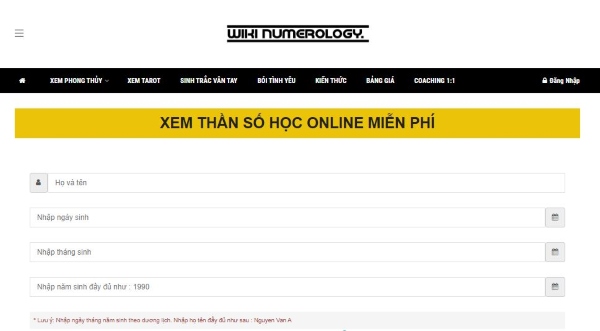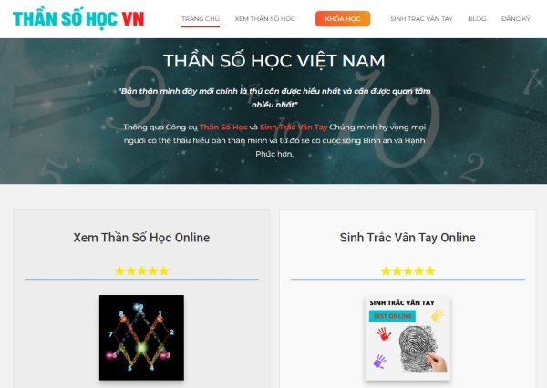 Trang web thần số học online free đầu tiên được giới thiệu là nhansohocvn.com. Trang web tra cứu này có độ chính xác cao được nhiều người tin tưởng sử dụng. Web nhansohocvn.com có khả năng phán đoán chính xác về bí mật cuộc đời của bạn thông qua ngày sinh và họ tên.