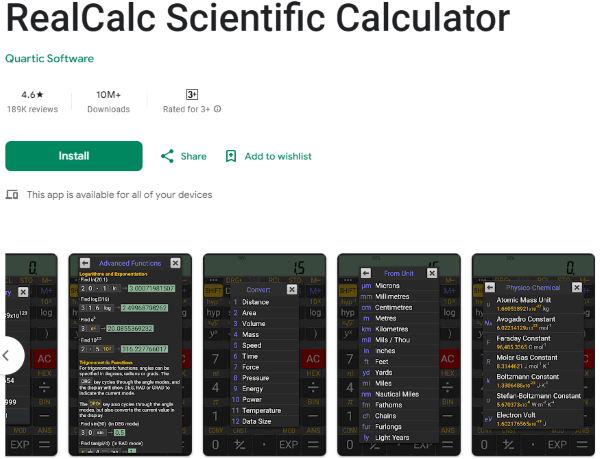 Các tính năng nổi bật của ứng dụng RealCalc Scientific Calculator: