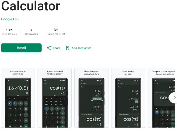 Google Calculator là một ứng dụng máy tính dành cho điện thoại được Google phát triển. Với Google Calculator, bạn chỉ cần nhập các phép toán sau đó ứng dụng sẽ tự động tính toán và hiển thị kết quả mà không cần phải thao tác thêm. Điều này mang lại khả năng rút ngắn thời gian thực hiện phép toán.