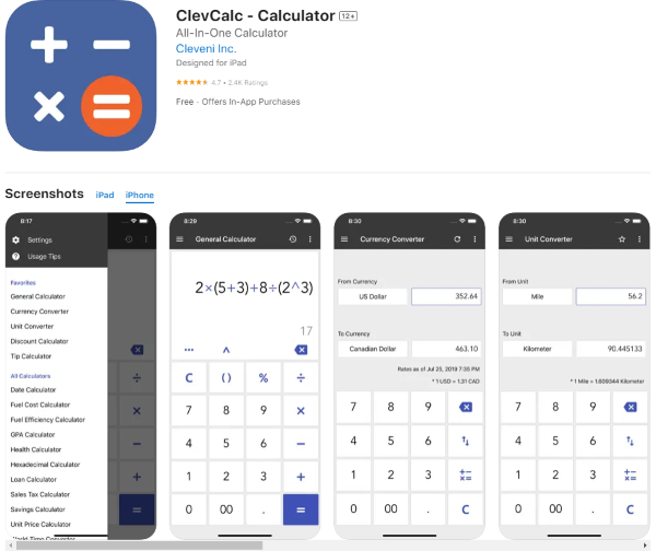 Các tính năng nổi bật của ứng dụng ClevCalc: