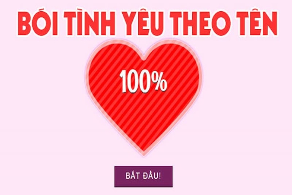App bói tình yêu này sử dụng tên của 2 người để tự động tính toán mức độ tương hợp giữa bạn và đối phương với tỉ lệ % về các vấn đề bao gồm: Tình yêu, đời sống hôn nhân và công việc, sự nghiệp.