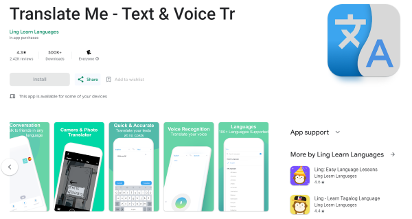 Translate Me là một trong những ứng dụng dịch ngôn ngữ tiếng Nhật tốt nhất hiện nay, giúp người sử dụng dịch thông qua dữ liệu hình ảnh và giọng nói với kết quả sát nghĩa nhất. Ứng dụng hỗ trợ rất tích cực khi người dùng có nhu cầu học ngoại ngữ hay giao tiếp với người nước ngoài.