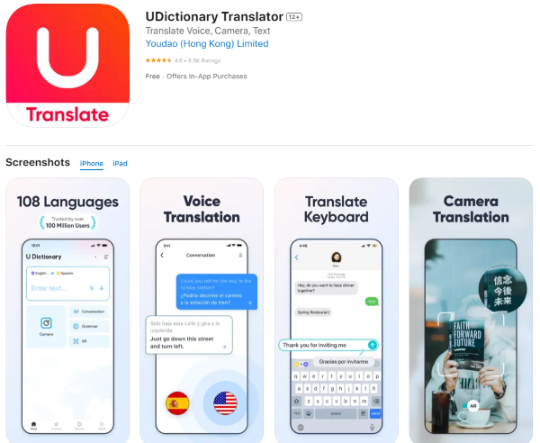 U – Dictionary là một ứng dụng hỗ trợ tra cứu từ điển đa ngôn ngữ với hệ thống phát âm chuẩn, dịch thuật từ hoặc câu. Nền tảng này nổi bật với công nghệ nhận dạng dịch hình ảnh cùng hệ thống camera chính xác và nhanh chóng. Nó sẽ giải quyết vấn đề khác biệt ngôn ngữ, hỗ trợ học tập, làm việc, giao tiếp hiệu quả hơn.