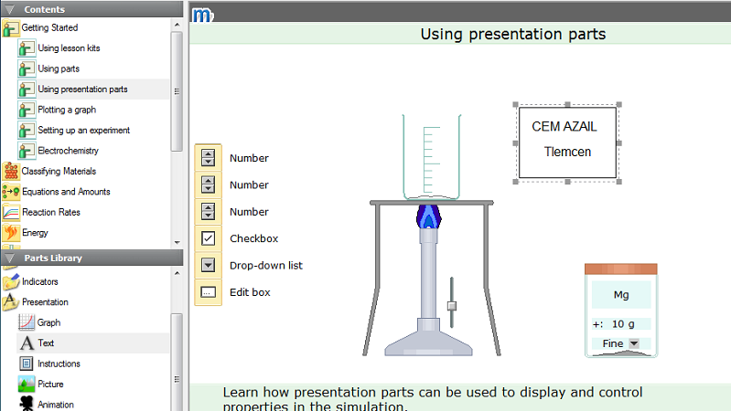 - Có thể xây dựng các thí nghiệm riêng của mình mình bằng cách cài đặt các hóa chất, phản ứng và xem xét kết quả thí nghiệm.