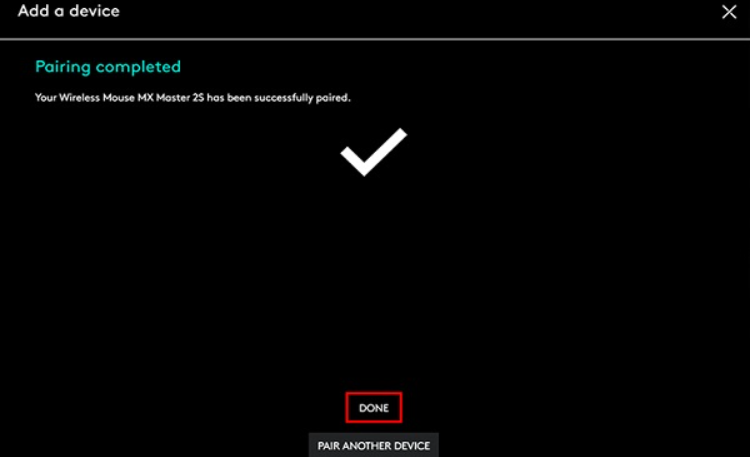 Bước 5: Chọn DONE để hoàn thành. Các lần sử dụng sau chỉ cần gắn USB Receiver vào và sử dụng (kể cả máy tính/laptop khác).