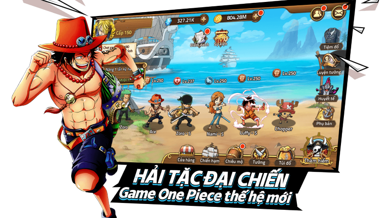Ngay từ bắt đầu, game đã mở khóa hàng loạt nhân vật, từ Luffy, Nami cho đến Zoro. Tiếp theo là Chopper, Brook, Trafalgar, Vivi… . Bên cạnh đó, còn có các băng hải tặc nổi tiếng như Băng hải tặc Râu trắng, Bộ lạc Mink, Bảy lãnh chúa biển cả… Để cho bạn thoải mái phiêu lưu và đắm chìm trong thế giới One Piece.