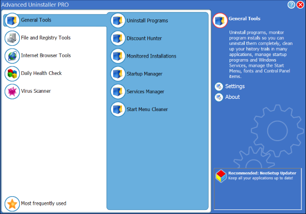 - Cung cấp đa dạng trình quản lý khởi động, hủy tệp tin, dọn dẹp rác và trình loại bỏ ứng dụng bảng điều khiển.
