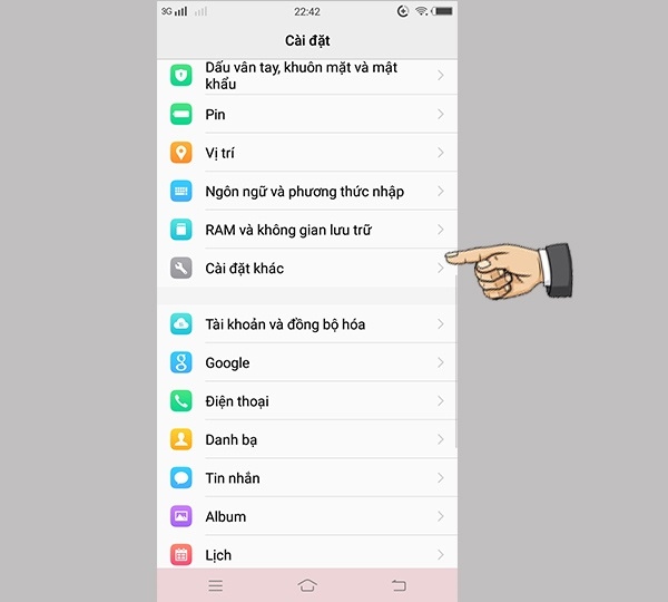 Bước 2: Tại mục Cài đặt, bạn chọn Cài đặt khác.