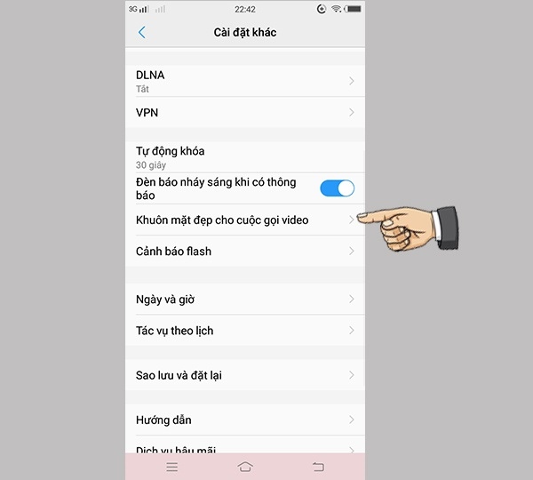 Tại đây, bạn sẽ thấy tùy chọn Khuôn mặt làm đẹp cho cuộc gọi video > nhấn chọn để kích hoạt Tính năng làm đẹp trong cuộc gọi video Zalo.