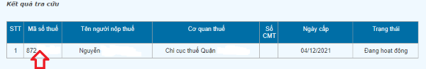 Bước 5: Xem thông tin mã số thuế cá nhân tại bảng kết quả hiện ra.