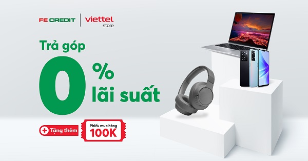 Để thuận tiện cho việc mua sắm của khách hàng, Viettel Store triển khai chương trình “Trả góp miễn lãi, 100K ưu đãi”, tặng phiếu mua hàng Got It cho khách hàng mua hàng tại hệ thống siêu thị Viettel Store và đăng ký thành công khoản vay FE CREDIT.
