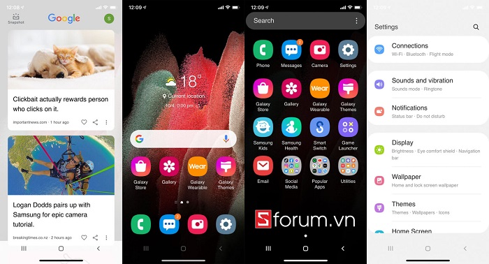 Ngoài ra, bạn cũng có thể vào kho ứng dụng Galaxy Store để tải các theme mới về thay giao diện cho điện thoại. Và thậm chí còn có thể vào được cả tin nhắn và gọi điện.