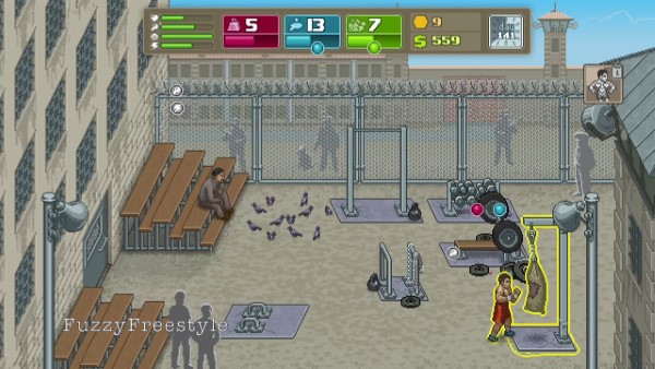 Nếu bị thương, bạn có thể đến khu vực nhà ăn để phục hồi thể lực. Dùng số tiền thưởng từ chiến thắng để nâng cấp kỹ năng và trang bị thêm những phụ kiện độc đáo. Bạn có đủ khả năng đánh bại mọi đối thủ và giành lại tự do bằng những chiến thắng vang dội trên võ đài không? Hãy thể hiện bản lĩnh ngay hôm nay!