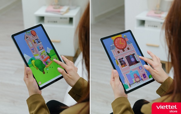 Một lần nữa, Samsung Galaxy Tab S6 Lite 2024 chứng minh sự tiện dụng của mình cả trong việc giải trí lẫn giáo dục trẻ. Với màn hình lớn 10.4 inch và độ phân giải cao 1200 x 2000 pixels hiển thị hình ảnh rõ ràng, màu sắc trung thực. Thiết kế viền màn hình mỏng hơn giúp tối đa không gian hiển thị. Nhờ vậy mà chiếc máy tính bảng này trở thành công cụ giáo dục và giải trí lý tưởng cho trẻ nhỏ lẫn gia đình.