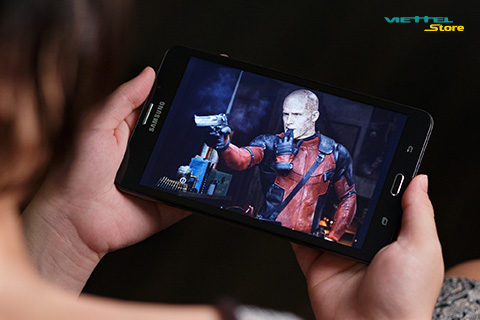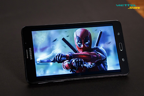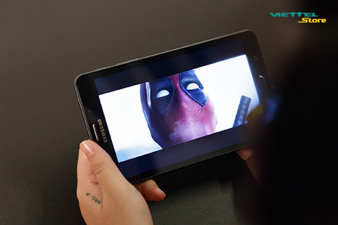 Hôm nay mình đã thử trải nghiệm block buster Deadpool trên Galaxy Tab A, trong phòng buổi tối, khá thiếu sáng. Kết quả khá hài lòng, khi xem Deadpool phiên bản HD từ đầu đến cuối không bị lag, giật, cũng không xảy ra tình trạng nhoè hình ảnh hay sai màu.