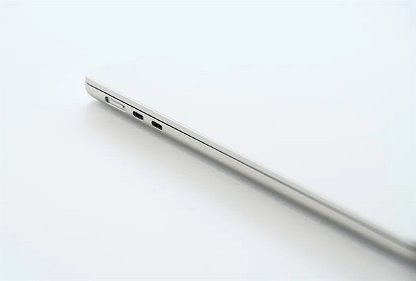 Các cổng kết nối trên MacBook Air 15 inch M2 giống với MacBook Air 13 inch gồm: cổng sạc MagSafe, cổng tai nghe 3.5 mm, 2 cổng Thunderbolt. Vì vậy nếu cần kết nối thêm các phụ kiện khác người dùng cần phải mua thêm cổng chuyển đổi.