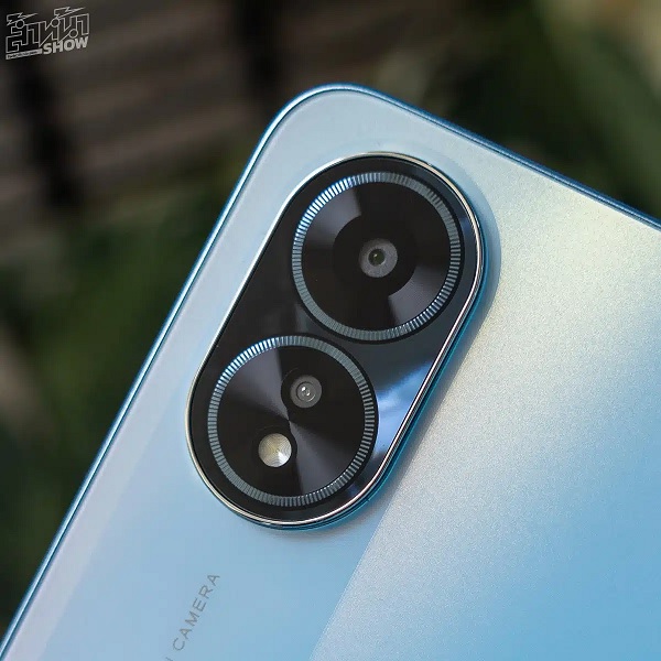Cụm camera cũng là một trong những điểm nhấn nổi bật của OPPO A18 với phần kéo dài trên mặt lưng cùng dòng chữ INNOVATIVE AI CAMERA thể hiện sự góp mặt của phần mềm trí tuệ nhân tạo AI, giúp nâng cao chất lượng hình ảnh cho thiết bị. Bên cạnh đó, thiết kế camera của máy cũng rất thu hút với một vòng tròn chứa cảm biến chính và một vòng tròn chứa cảm biến phụ cùng đèn flash.