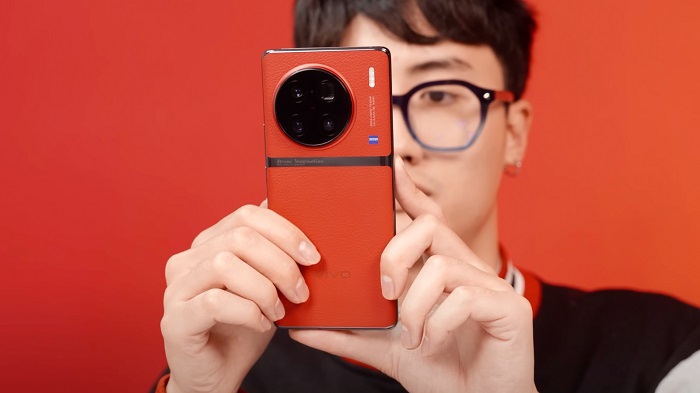 Phiên bản trên tay hôm nay có màu đỏ. Mặt lưng nổi bật với màu đỏ rực rỡ kết hợp cụm camera hình tròn siêu to khổng lồ để lại ấn tượng mạnh với người dùng. Đặc biệt, khi cầm trên tay vivo X90 Pro+ cho cảm giác cầm nắm rất thoải mái. Có được điều này là nhờ vào chất liệu da mềm mại và thân máy được bo cong.