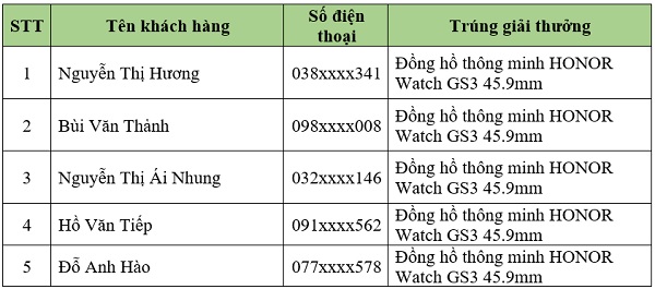 Danh sách khách hàng trúng thưởng tiếp theo sẽ được Viettel Store cập nhật liên tục. Quý khách hàng vui lòng theo dõi tại website: viettelstore.vn.