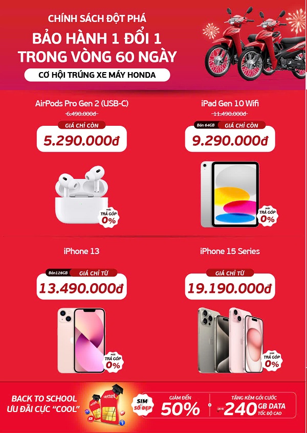 Từ ngày 17/08 đến 31/08/2024 khách hàng mua hàng tại siêu thị mới khai trương của Viettel Store tại địa chỉ: Số 591 Ngô Quyền, P.An Hải Bắc, Q. Sơn Trà, TP. Đà Nẵng (Ngay cổng KCN An Đồn) sẽ được nhận nhiều ưu đãi hấp dẫn như mua smartphone chính hãng có cơ hội trúng xe máy Honda, lễ hội 2G lên 4G: Thu máy ‘cục gạch’ lấy ngay smartphone, phụ kiện chính hãng chỉ từ 29k, SIM số đẹp giảm đến 50%.