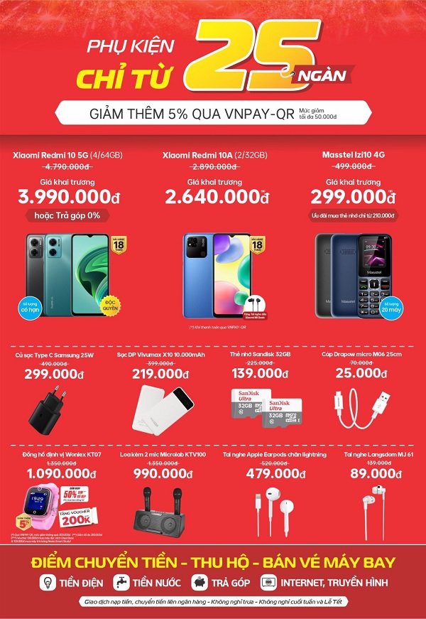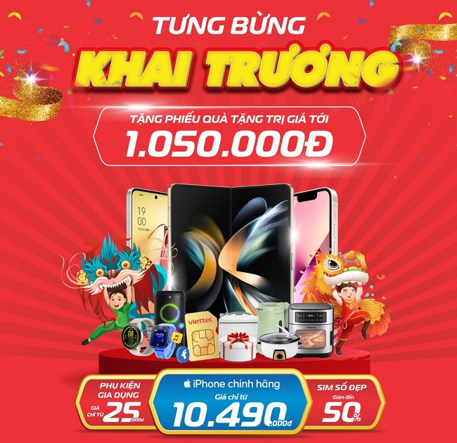 Từ ngày 24/09 – 30/09/2022 khách hàng mua hàng tại siêu thị mới khai trương của Viettel Store tại địa chỉ: Số 31 Tổ 2, Khu phố Khánh Hòa, P. Tân Phước Khánh, Tân Uyên, Bình Dương ( Ngay chợ Tân Phước Khánh) sẽ được nhận nhiều ưu đãi hấp dẫn cùng phiếu quà tặng mua sắm giá trị tới 1.050.000đ.