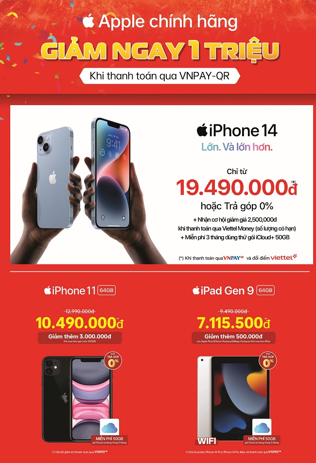 Từ ngày 25/11 – 30/11/2022 khách hàng mua hàng tại siêu thị mới khai trương của Viettel Store tại địa chỉ: Số 424 Nguyễn Tất Thành, Khối Tân Phong, Phường Quỳnh Thiện, Thị xã Hoàng Mai, Tỉnh Nghệ An sẽ được nhận nhiều ưu đãi hấp dẫn như iPhone 14 chính hãng giá chỉ từ 19.490.000đ, phụ kiện giá từ 25.000đ, SIM số đẹp vô hạn Data.