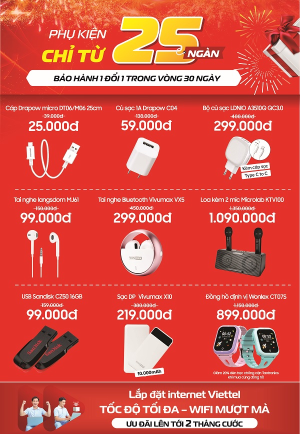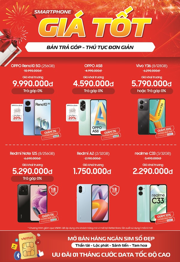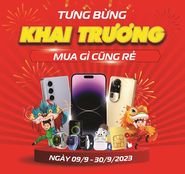 Từ ngày 09/09 đến 30/09/2023 khách hàng mua hàng tại siêu thị mới khai trương của Viettel Store tại địa chỉ: Số 56-58-60-62 đường Phạm Hùng, Bình Hưng, Bình Chánh, TP. Hồ Chí Minh sẽ được nhận nhiều ưu đãi hấp dẫn như mua smartphone chính hãng giảm đến 8 triệu đồng, phụ kiện giá chỉ từ 25.000đ, mở bán hàng ngàn SIM số đẹp ưu đãi 01 tháng cước Data tốc độ cao.