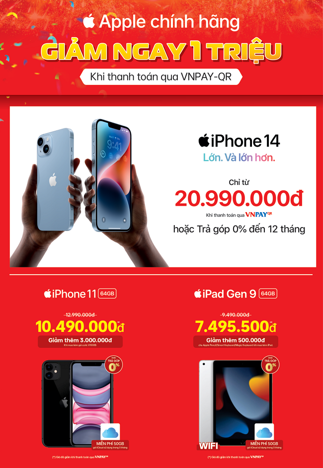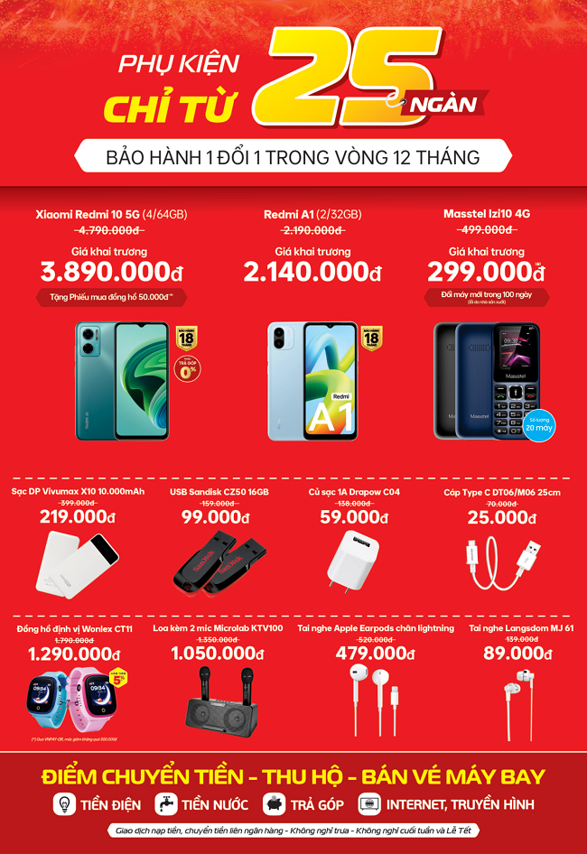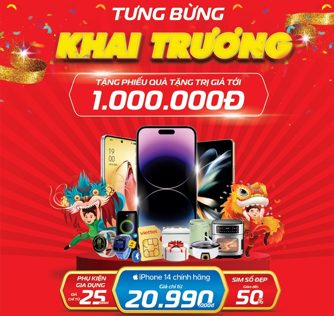 Từ ngày 01/11 – 15/11/2022 khách hàng mua hàng tại siêu thị mới khai trương của Viettel Store tại địa chỉ: Số 140-142-144 Nguyễn Văn Thảnh, Tổ 3, Khóm 5, Cái Vồn, TX. Bình Minh, T. Vĩnh Long (Ngã 4 Cái Vồn) sẽ được nhận nhiều ưu đãi hấp dẫn cùng voucher mua sắm giá trị tới 1.000.000đ.