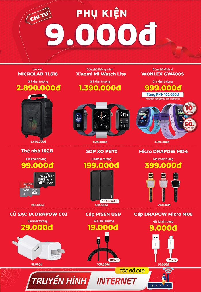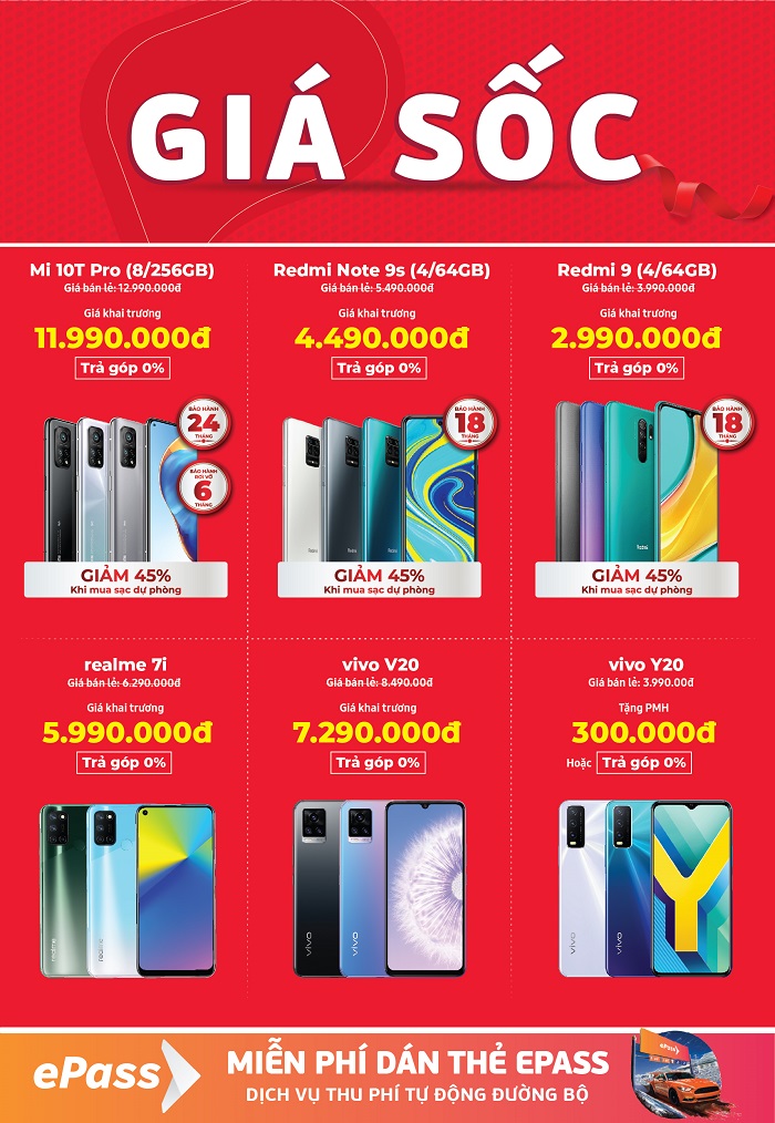 Để chào đón sự kiện khai trương, từ ngày 26/03 đến 04/04/2021, khách hàng mua hàng tại siêu thị mới khai trương sẽ được nhận nhiều ưu đãi hấp dẫn độc quyền như mua smartphone giảm đến 9 triệu đồng, Phụ kiện chính hãng giá chỉ từ 9k.