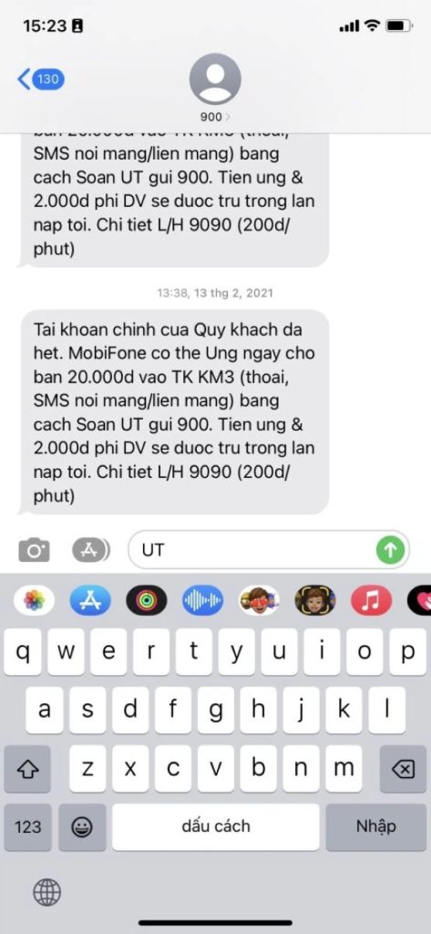 - Thuê bao nhận được tin nhắn ứng tiền từ MobiFone.