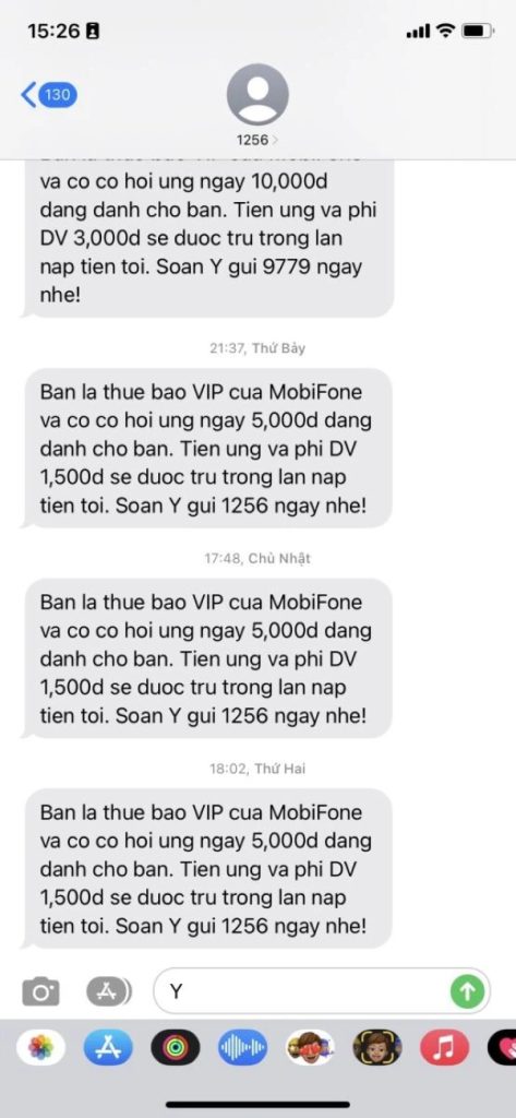 Thuê bao sẽ nhận được tin nhắn mời ứng tiền từ tổng đài 1225. Bạn chỉ cần soạn Y gửi 1225 để xác nhận ứng tiền.