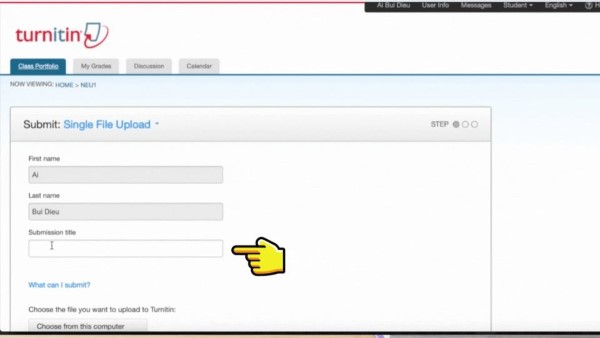 Bước 7: Bạn sẽ cần điền đầy đủ các thông tin cần thiết, bao gồm Submit Title, sau đó Upload file chứa nội dung bài viết mà bạn muốn kiểm tra.