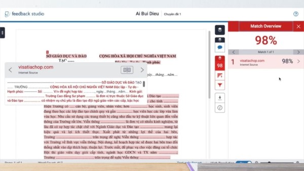 - Hiển thị tỷ lệ phần trăm nội dung trùng lặp.