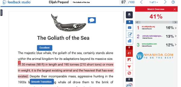 Không chỉ hiển thị tỷ lệ trùng khớp, công cụ check đạo văn Turnitin miễn phí còn xác định rõ ràng các đoạn văn bị sao chép và nguồn tài liệu gốc. Điều này giúp người dùng có thể điều chỉnh lại nội dung để đảm bảo tính độc quyền.