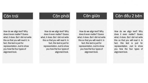 Việc bố cục căn trái, căn phải, căn giữa hoặc căn đều 2 bên trong thiết kế Typography đóng vai trò vô cùng quan trọng để tạo ra sự cân đối và hài hòa cho tổng thể văn bản, ngoài ra còn mang các mục đích cụ thể khác nhau.