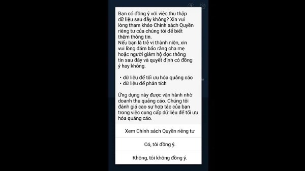 Bước 3: Mở ứng dụng lên, chọn vào Có, tôi đồng ý với các điều khoản dịch vụ yêu cầu của ứng dụng.