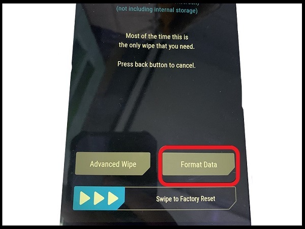 Bước 2: Tại giao diện chính của TWRP, người dùng hãy nhấn chọn mục Wipe >> chọn Format Data.