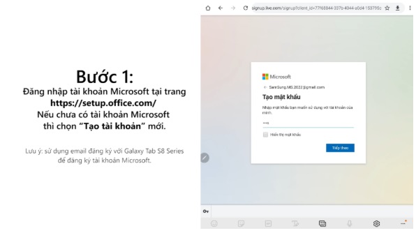 Lưu ý: Để đảm bảo khách hàng có thể nhớ đầy đủ email và mật khẩu, sử dụng email đăng ký với Samsung Tab S11 Series để đăng ký tài khoản Microsoft.