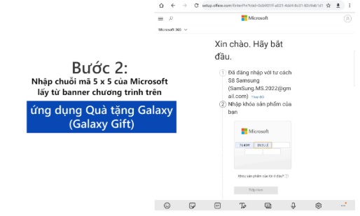 – Bước 2: Nhập chuỗi mã 5×5 của Microsoft được tặng kèm khi mua Galaxy Tab S10 Series & Tab S10 FE Series.