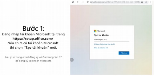 Lưu ý: Để đảm bảo khách hàng có thể nhớ đầy đủ email và mật khẩu, sử dụng email đăng ký với Samsung Tab S8 Series để đăng ký tài khoản Microsoft.