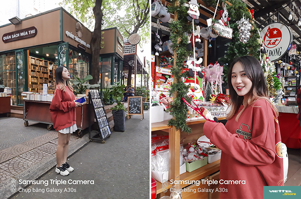 Là thiết bị tầm trung hướng đến giới trẻ, Galaxy A30s được trang bị cụm 3 camera AI tiên tiến với cảm biến chính lên đến 25MP – cùng khẩu độ lớn F/1.7 giúp thu sáng tốt hơn các camera cùng phân khúc. Chi tiết tốt, ảnh sắc nét, ảnh cân bằng dải nhạy sáng tốt, khẩu độ F/1.7 lớn thách thức điều kiện ánh sáng phức tạp cũng như thao tác giơ lên – chụp – lưu ảnh cực dễ dàng. Galaxy A30s sẽ là hành trang không thể thiếu giúp các bạn trẻ checkin dịp Noel cuối năm nay.