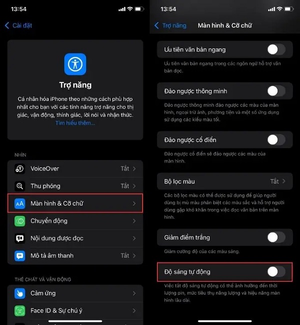 iPhone trang bị cảm biến ánh sáng giúp máy tự điều chỉnh độ sáng phù hợp với môi trường xung quanh. Khi ánh sáng giảm, màn hình sẽ tự mờ đi để tiết kiệm pin và bảo vệ mắt. Tuy nhiên, đôi khi sự thay đổi liên tục khiến người dùng cảm thấy khó chịu vì độ sáng không giữ nguyên như mong muốn.