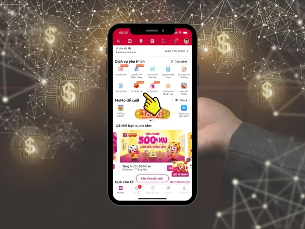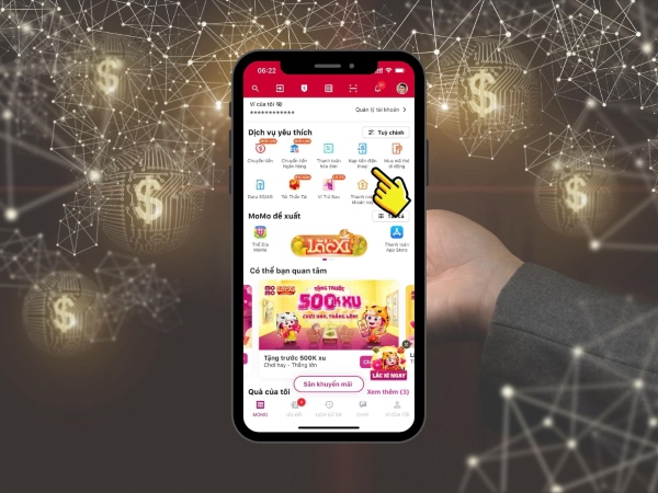 Bước 1: Khởi chạy ứng dụng MoMo > Vào ví Thần Tài.