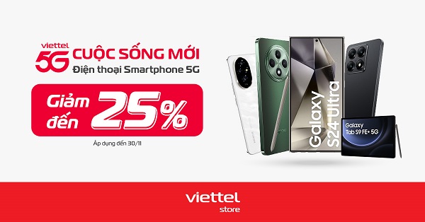 Hôm nay, Viettel Store mang đến cơ hội tuyệt vời cho các tín đồ công nghệ nhân dịp khai trương mạng 5G với chương trình ưu đãi “Viettel 5G Cuộc sống mới – Điện thoại smartphone 5G giảm đến 25%”. Đây là dịp để bạn sở hữu những siêu phẩm như Samsung Galaxy S24 Ultra, Honor 200 hay Vivo V30E,… với mức giá vô cùng hấp dẫn. Chương trình kéo dài đến hết ngày 30/11, vì thế bạn hãy nhanh tay để không bỏ lỡ cơ hội này nhé!