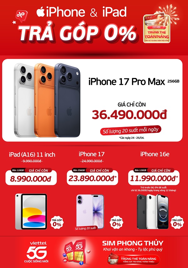 Nhân dịp này, khách hàng có cơ hội sở hữu smartphone giảm đến 12 triệu đồng, phụ kiện chỉ từ 29K, mua SIM số đẹp tặng kèm Data 5G lên tới 500GB cơ hội trúng thẻ toàn năng với tổng giá trị hàng trăm triệu đồng. Đây là dịp lý tưởng để người dùng trải nghiệm sản phẩm công nghệ mới với chi phí tối ưu.