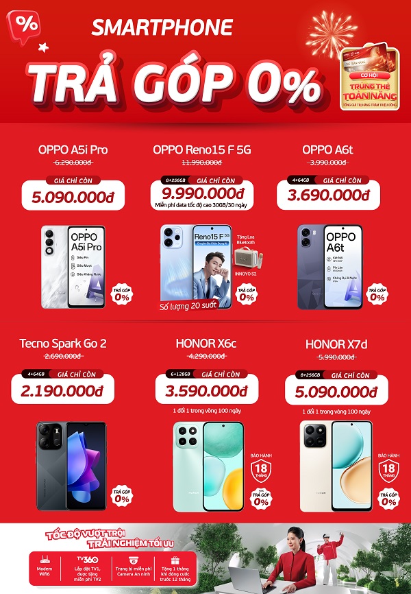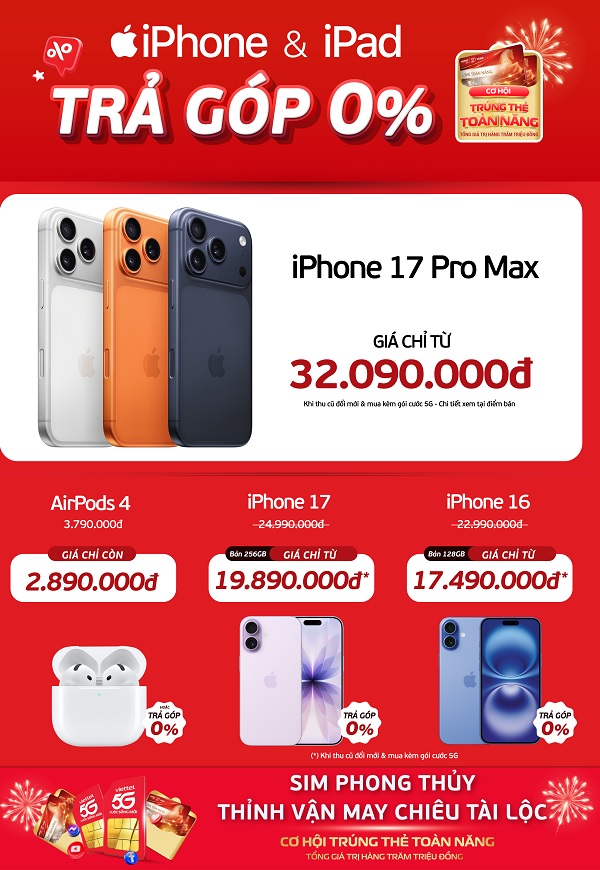 Từ ngày 23/01/2026, Viettel Store chính thức khai trương siêu thị mới tại số 506 Cách Mạng Tháng 8, phường Nhiêu Lộc, TP.HCM với rất nhiều ưu đãi hấp dẫn dành cho khách hàng. Hàng loạt smartphone giảm giá lên đến 8 triệu đồng, phụ kiện chính hãng chỉ từ 29K, SIM phong thủy thỉnh vận may tặng kèm Data 5G lên đến 500GB cùng cơ hội trúng thẻ toàn năng tổng giá trị hàng trăm triệu đồng.