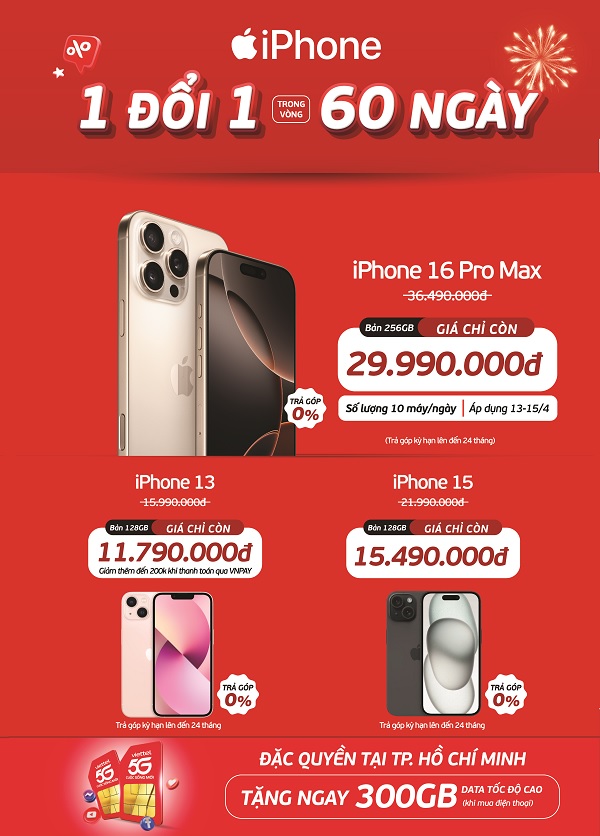 Từ ngày 13 – 15/04, iPhone 16 Pro Max 256GB giá chỉ 29.990.000đ (10 Suất/ngày).