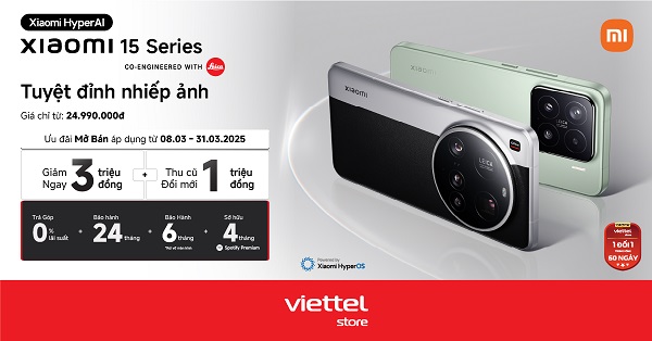 Từ ngày 08/03 đến hết ngày 31/03/2025, khi chọn mua bộ đôi siêu phẩm “Tuyệt đỉnh nhiếp ảnh” đến từ nhà Xiaomi là Xiaomi 15 và Xiaomi 15 Ultra tại hệ thống các siêu thị Viettel Store bạn sẽ được mua với giá giảm chỉ còn từ 24.990.000 đồng cùng ưu đãi hấp dẫn đi kèm. Xem chi tiết ngay!